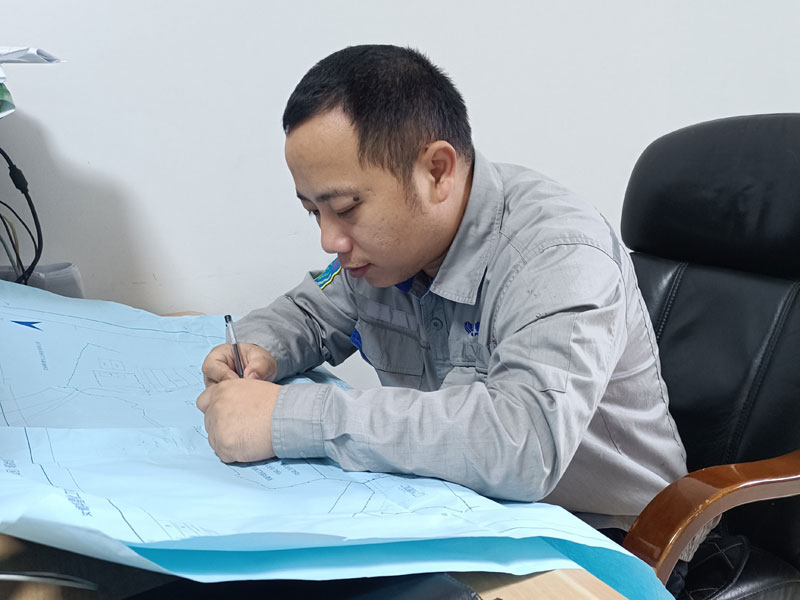 機(jī)關(guān)黨支部黨員、設(shè)備工程部三級(jí)干部許真正在認(rèn)真核對(duì)工程施工圖紙。施工圖紙是工程建設(shè)的基礎(chǔ),是編制工程施工計(jì)劃、材料采購(gòu)計(jì)劃、勞動(dòng)力組織計(jì)劃等的依據(jù),圖紙審核是工程項(xiàng)目的作業(yè)指導(dǎo)書,細(xì)致的核對(duì)能有效避免工程偏差,是優(yōu)質(zhì)工程建設(shè)的關(guān)鍵性工作。