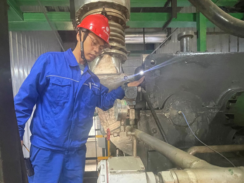 氯堿分公司黨支部入黨積極分子、精制鹽車間副主任王國(guó)慶對(duì)車間重點(diǎn)設(shè)備離心機(jī)進(jìn)行日常巡查,確保設(shè)備運(yùn)行溫度、壓力、油位等關(guān)鍵指標(biāo)都處于正常范圍內(nèi)。今年以來(lái),精制鹽車間設(shè)備運(yùn)行穩(wěn)定,生產(chǎn)工藝持續(xù)優(yōu)化,日均處理精制鹽27噸。