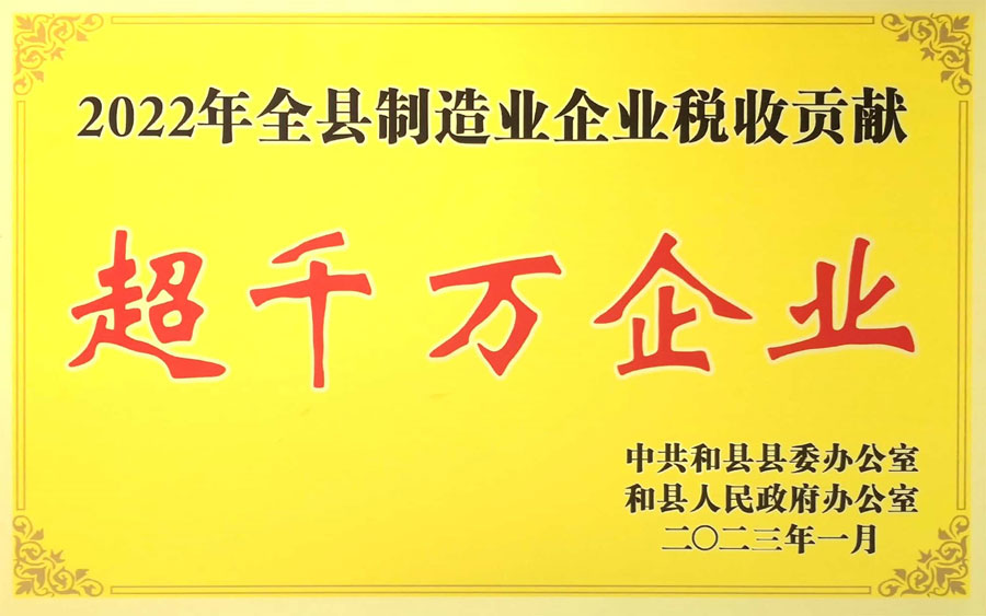 為弘揚(yáng)先進(jìn)、樹立典型,和縣縣委、縣政府決定對2022年度全縣制造業(yè)企業(yè)稅收貢獻(xiàn)超千萬元企業(yè)進(jìn)行表彰,并在會上進(jìn)行了通報,華星公司榮獲“2022年度全縣制造業(yè)企業(yè)稅收貢獻(xiàn)超千萬元企業(yè)”榮譽(yù)稱號。