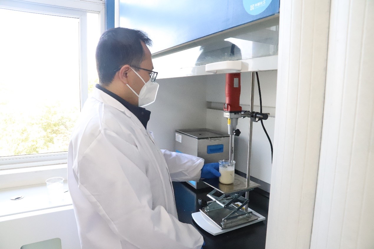 時(shí)間緊、任務(wù)重,然而第一關(guān)就給華星公司科研工作者們來(lái)了個(gè)下馬威,某懸浮劑(超分散型)的配置,常規(guī)產(chǎn)品粘度大于500mPa.s,給生產(chǎn)加工帶來(lái)極大不便,更新配方迫在眉睫。董強(qiáng)帶領(lǐng)的科研小組需要在數(shù)百種藥劑中篩選出性能最好的助劑組合,即使每天不間斷連軸進(jìn)行實(shí)驗(yàn),每天有效配比的藥劑組合也是有限的。每到實(shí)驗(yàn)的關(guān)鍵階段,通宵達(dá)旦是常常的事,董強(qiáng)站在試驗(yàn)臺(tái)前聚精凝神,觀察著實(shí)驗(yàn)數(shù)據(jù)的變化。